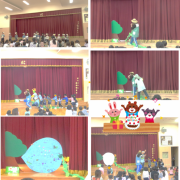 10月26日(日)に開催された、青洲まつりに5歳児さんが参加して来ました。自分達で手作りをしたハロウィンパーティー用のマントと頭飾りをつけて「グーチョキパーでパ····