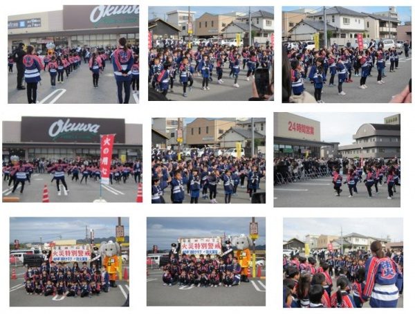 今回は「オークワ粉河店」さんで幼年消防クラブの防火演技、そして「防火の誓い」を行いました。