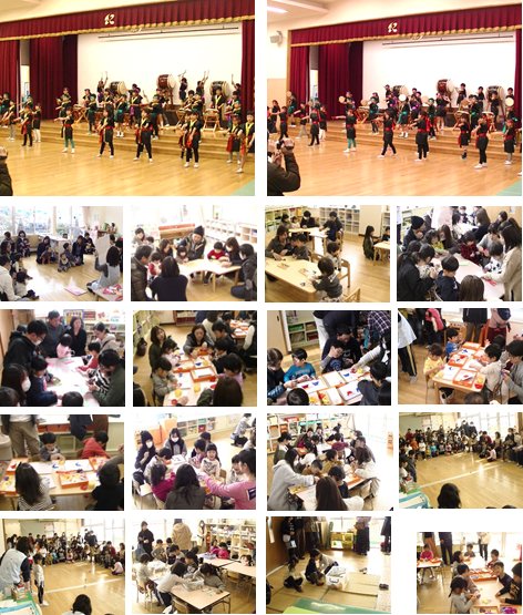 それぞれのクラスでは、お家の方と一緒にふれあい遊びや制作を行い、