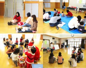 12月12日 1歳児子育て教室 2019年12月12日 クリスマス会にサンタさんが登場!じっと見たり、 ソワソワしたり、お母さんの後ろに隠れたりと かわいい姿が見えました。 制作や楽器遊びも楽しめました。 « 新しい記事へ 古い記事へ »