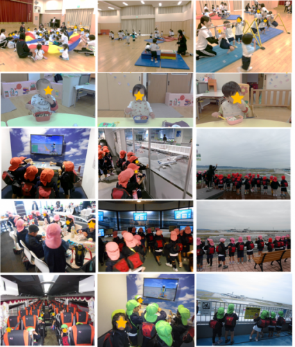 あいにくの雨模様となってしまいましたが、乳児組さんは園内で遠足ごっこを行い、幼児組さんは予定通り関西国際空港へ行って来ました。乳児組は遊戯室でサーキット等を楽しんだ後、お弁当を嬉しそうに食べていました♪幼児組さんはバスの中から元気パワー全開!坂道を下るだけで「キャーキャー」と大喜び…。空港が近づくと飛行機が飛んでいるのが見えて、またまた大興奮!!普段は入れないバックヤードを見せてもらったり、展望台で飛行機の離着陸を見たりしました。行きのバスの中から「お腹空いたー」「お弁当まだー?」と言っていたお弁当タイムは、嬉しそうな笑顔がたくさん見られました(*^-^*)