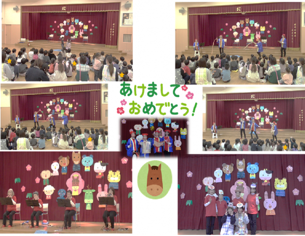 今日から平常保育が始まり、全園児で新年お楽しみ会をしました。