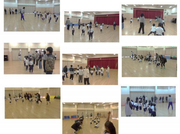 今日は体育教室の参観でした。寒い中たくさんの保護者の方に来園していただきありがとうございました。子どもたちの日頃の頑張っている様子を見てもらい嬉しい表情をしていました。はりきっている子どもや、恥ずかしそうにしている子どもなど様々でしたがみんな一生懸命がんばっていました。最後は親子で長縄をしたり、ドッチボールをしたり体を使って楽しい時間を過ごす事ができました。