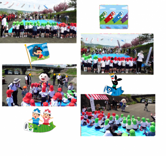 名手川の「鯉のぼりまつり」に4、5歳児さんが参加しました。園歌と「こいのぼり」の歌を元気に歌いました♪