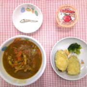 カレーうどん さつまいもの天ぷら 付₎ブロッコリー ゼリー 小魚