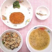 炊き込みご飯 コロッケ 付₎ブロッコリー みそ汁 小魚