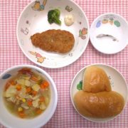 ホットドック ジャーマンポテト コンソメスープ 小魚
