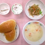 ロールパン クリームシチュー 春雨サラダ ヨーグルト 小魚
