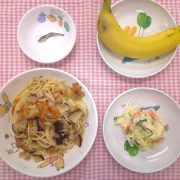 きのこの和風スパゲティ ポテトサラダ 果物(バナナ) 小魚