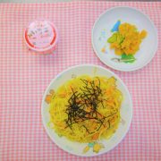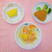ツナの和風スパゲティー かぼちゃサラダ ヨーグルト 小魚