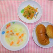 黒糖ロール クリームシチュー 春雨サラダ 小魚