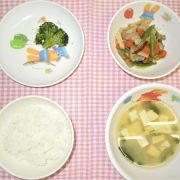 ごはん 筑前煮 ブロッコリーのごまあえ 味噌汁 小魚