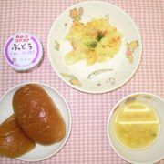 黒糖ロール マカロニグラタン コンソメスープ ヨーグルト 小魚