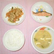 ごはん 鮭の塩焼き 切干大根煮 味噌汁 チーズ
