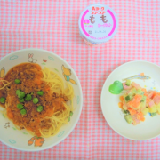 ミートスパゲティー マセドアンサラダ 小魚 ヨーグルト