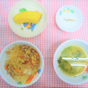 ☆自由保育☆ 豚丼 味噌汁 果物(バナナ) 小魚