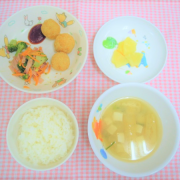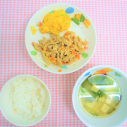 ☆自由保育☆ チキンライス ポテトサラダ コンソメスープ 小魚