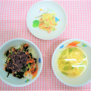 ビビンバ風丼 春雨サラダ かき玉スープ 小魚