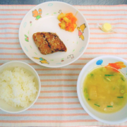 ごはん 鯖の竜田揚げ じゃがいもきんぴら 味噌汁 チーズ