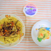 きのこスパゲティー マセドアンサラダ ゼリー 小魚