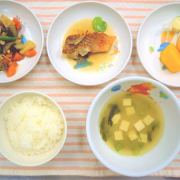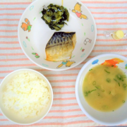ごはん さばの塩焼き きゅうりの酢の物 味噌汁 チーズ