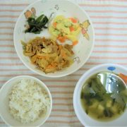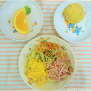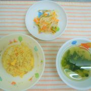五目チャーハン 中華風サラダ 小松菜の中華スープ 小魚