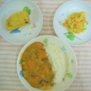 カレーライス キャベツとツナのサラダ 果物(バナナ) 小魚