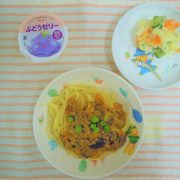 ナス入りミートスパゲティー ポテトサラダ ゼリー 小魚