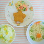 ☆七夕ランチ☆ コーンと枝豆ごはん 星のコロッケ トマトときゅうりのツナ和え ミニそうめん