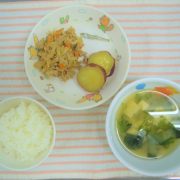 ごはん 豚肉の生姜焼き さつま芋の甘煮 味噌汁 小魚