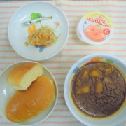 ロールパン ビーフシチュー 三色サラダ ゼリー 小魚