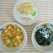 マーボー丼 切干大根のサラダ 小松菜の中華スープ 小魚