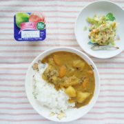 カレーライス キャベツとツナのサラダ ヨーグルト 小魚