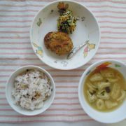 八穀ごはん カムカム和風ハンバーグ 和風マヨサラダ 味噌汁 小魚