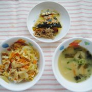 豚丼 かぼちゃのそぼろ煮 味噌汁 小魚