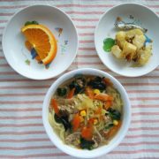 みそラーメン じゃがいもの和風マヨ焼き オレンジ 小魚