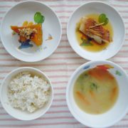 麦ごはん 赤魚の煮付け かぼちゃのそぼろ煮 味噌汁
