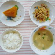 ごはん 豚肉の生姜焼き かぼちゃの甘煮 味噌汁 小魚