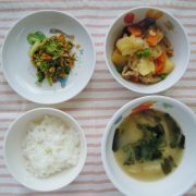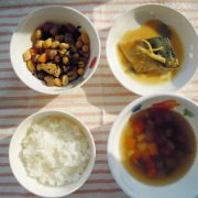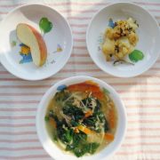 ごはん さばの味噌煮 ひじきと大豆の煮物 のっぺい汁 ※のっぺい汁にさつまいもが入りました。