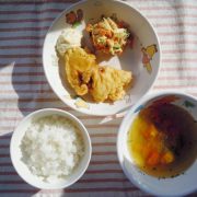 ごはん チキン南蛮 ごぼうサラダ コンソメスープ
