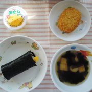 ☆節分ランチ☆ 巻き寿司(3歳以上児) ちらし寿司(3歳未満児) コロッケ すまし汁 ゼリー