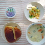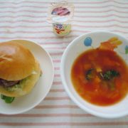 手作りハンバーガー ミネストローネ ヨーグルト