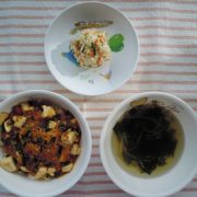 マーボー丼 切干大根のサラダ ワカメスープ 小魚