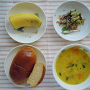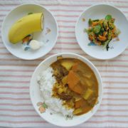カレーライス ミックスサラダ 果物(バナナ) チーズ