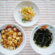マーボー丼 春雨サラダ ワカメスープ 小魚