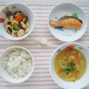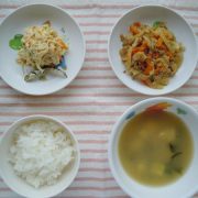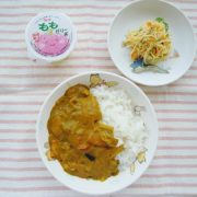 夏野菜カレー スパゲティーサラダ ゼリー 小魚