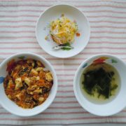 マーボー丼 春雨サラダ ワカメスープ 小魚