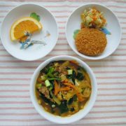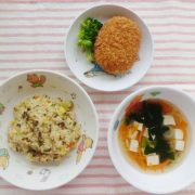 レタスチャーハン コロッケ 付け合せ(ブロッコリー) 小松菜の中華スープ 小魚