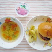 手作りハンバーガー フライドポテト(のりしお)コンソメスープ ゼリー