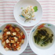 マーボー丼 春雨サラダ ワカメスープ 小魚